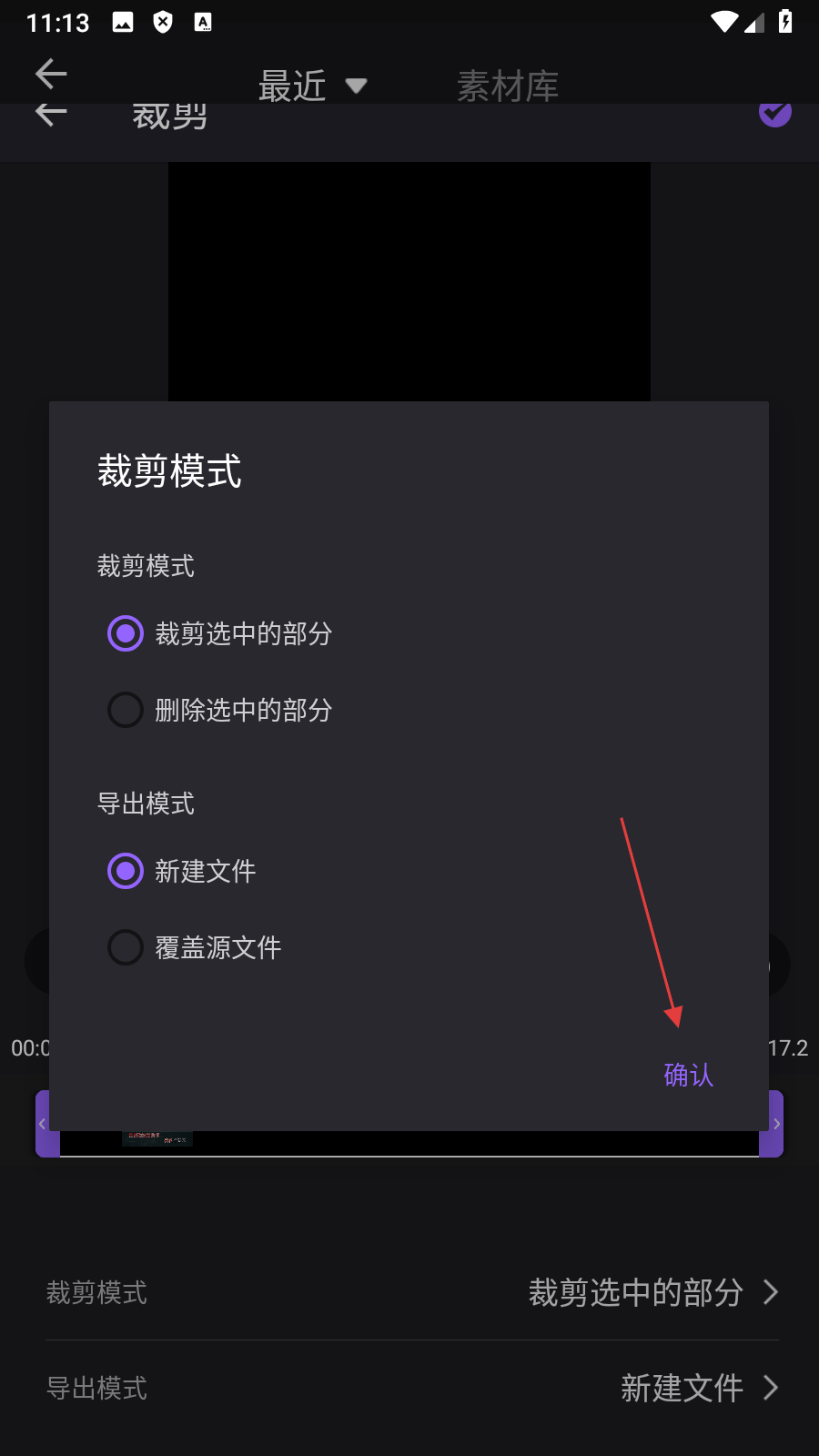 3、选择裁剪模式和导出模式后,点击【确认】,进入视频裁剪页面。