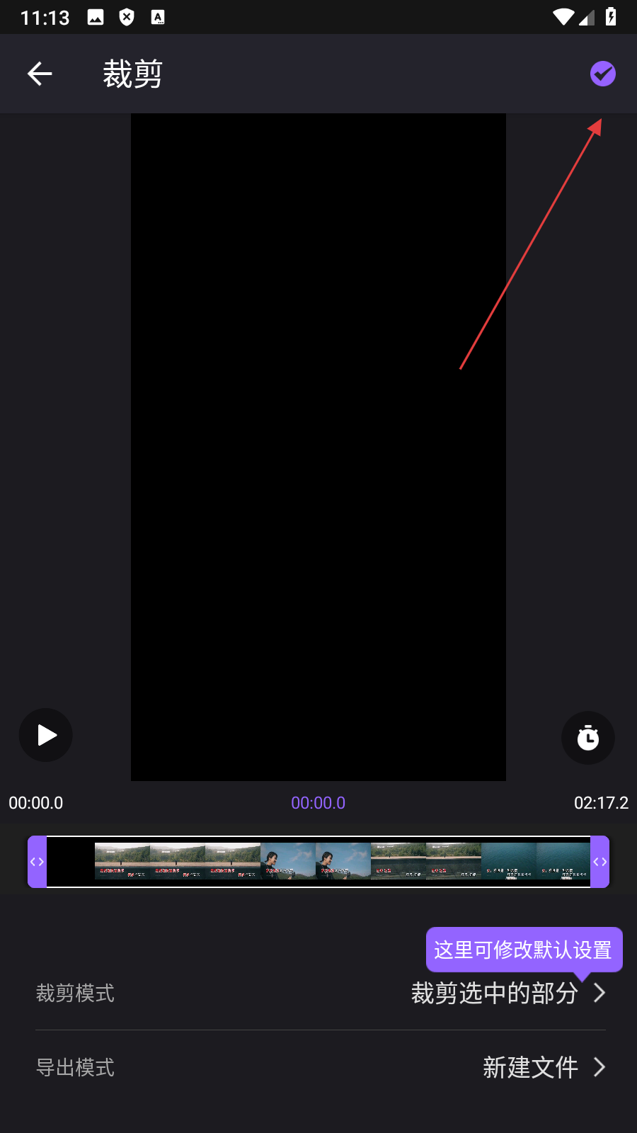 4、在视频裁剪页面完成裁剪操作后,点击【确认】图标,即可完成视频裁剪操作。