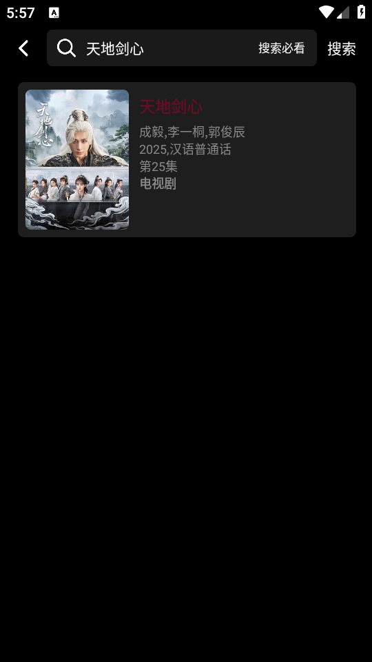 3、在搜索结果中,点击【天地剑心】的条目,进入该剧的播放页面。