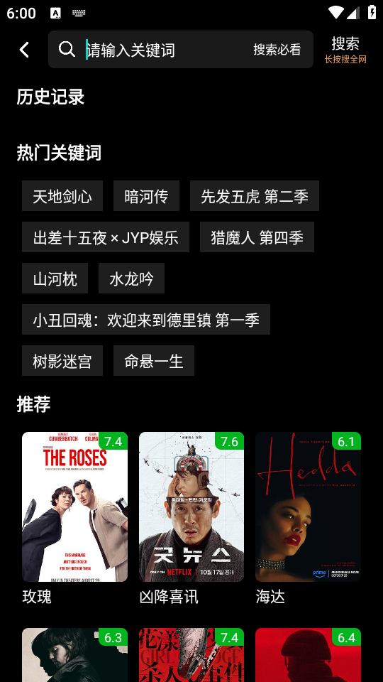 2、具备强大的搜索能力支持关键词与语音搜索,快速的找到目标影视作品并提供相关系列推荐。