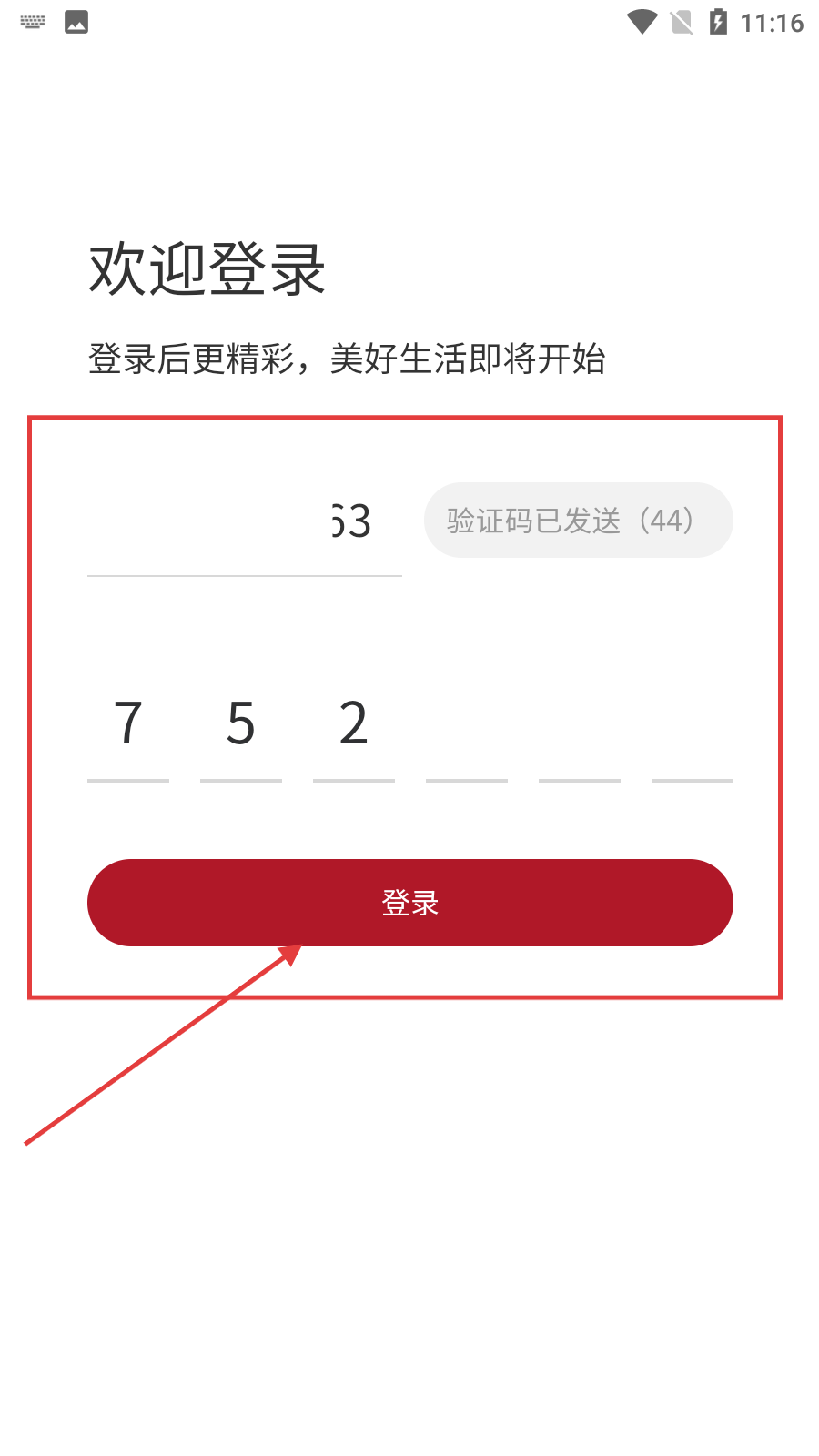 4、输入收到的验证码后,点击【登录】按钮完成登录。