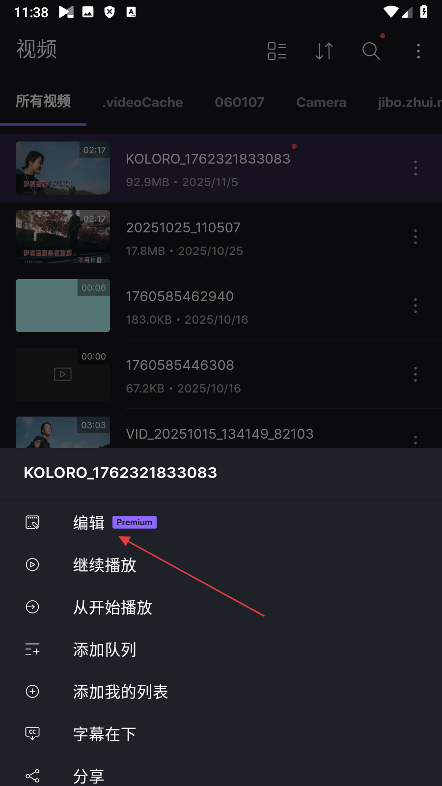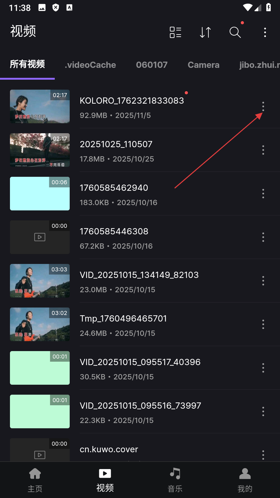 2、在视频列表页面,点击【目标视频右侧三点图标】,展开操作菜单。