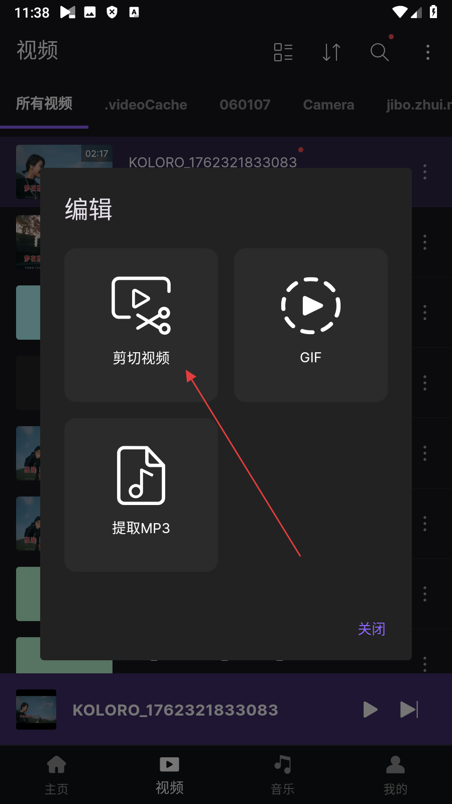4、在编辑选项中,点击【剪切视频】,即可开始编辑视频。