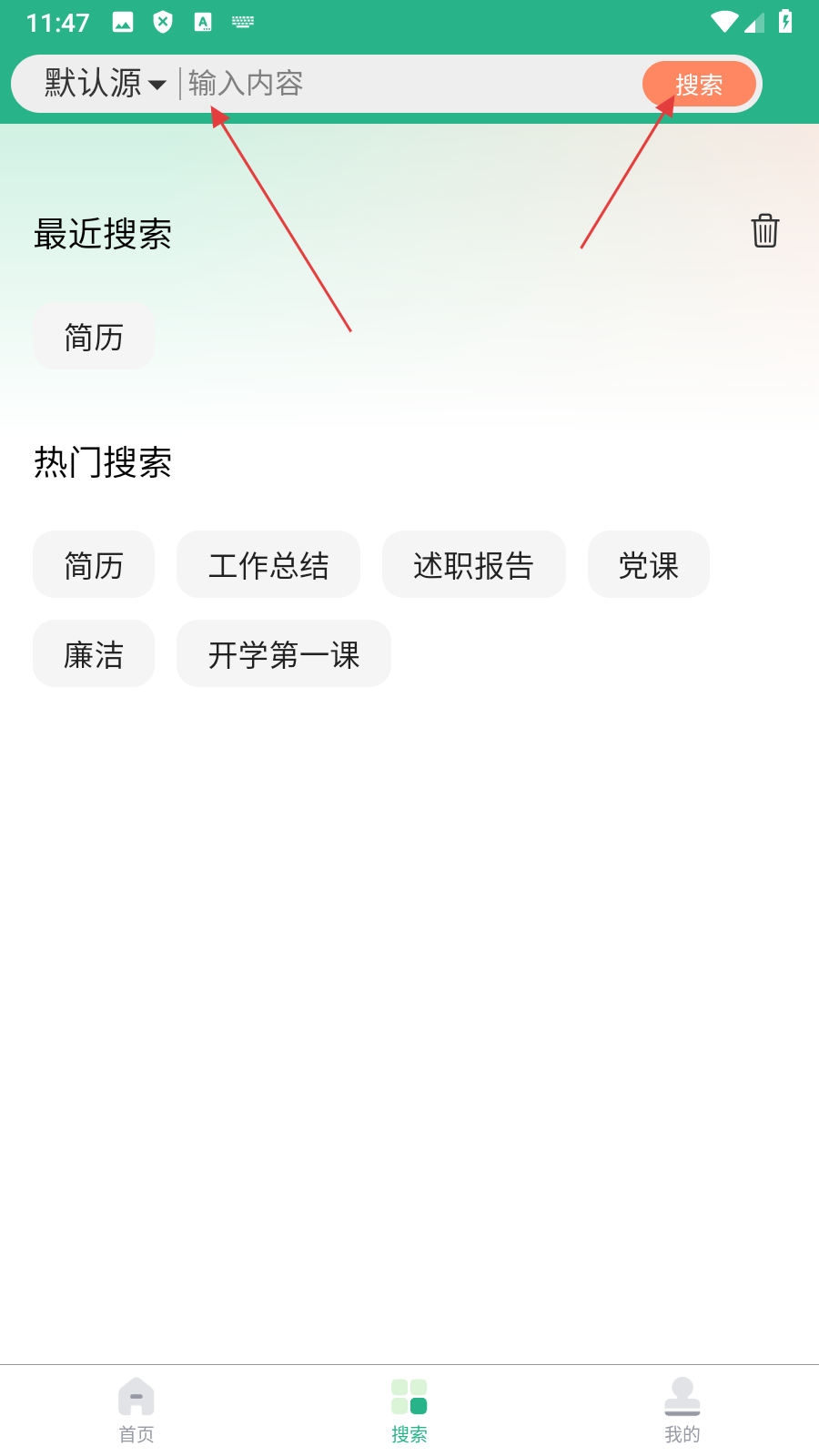 2、在搜索页面【输入内容】后,点击【搜索】,获取搜索结果。