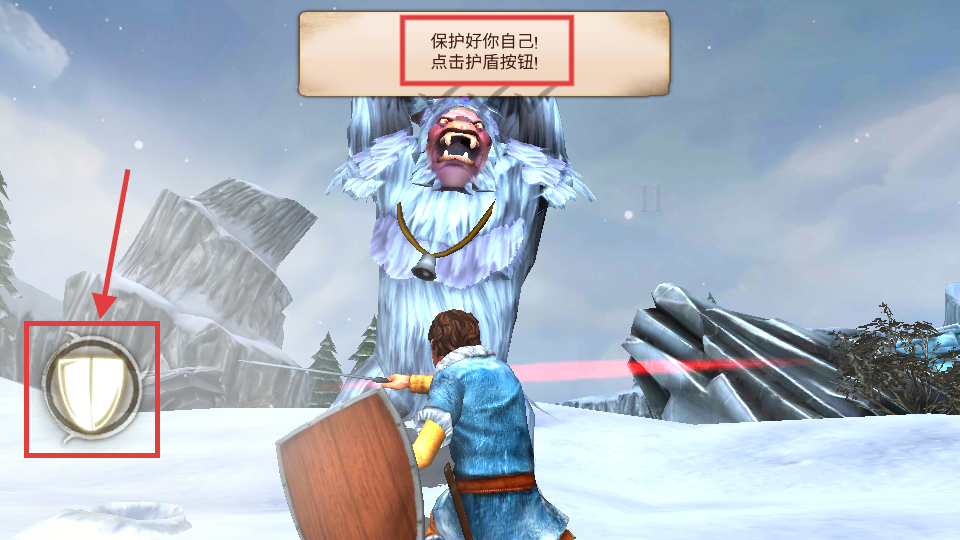 4、战斗时点击左侧护盾按钮格挡,保护自己免受巨兽攻击,为后续捕捉或击杀做准备。
