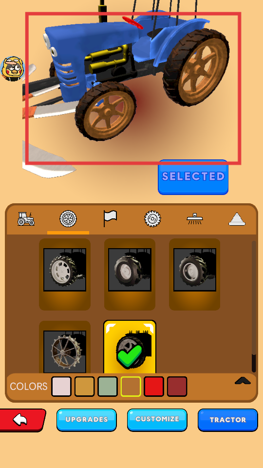 3、选择款式后,再选择喜欢的车轮款式和颜色,自定义拖拉机的外观。