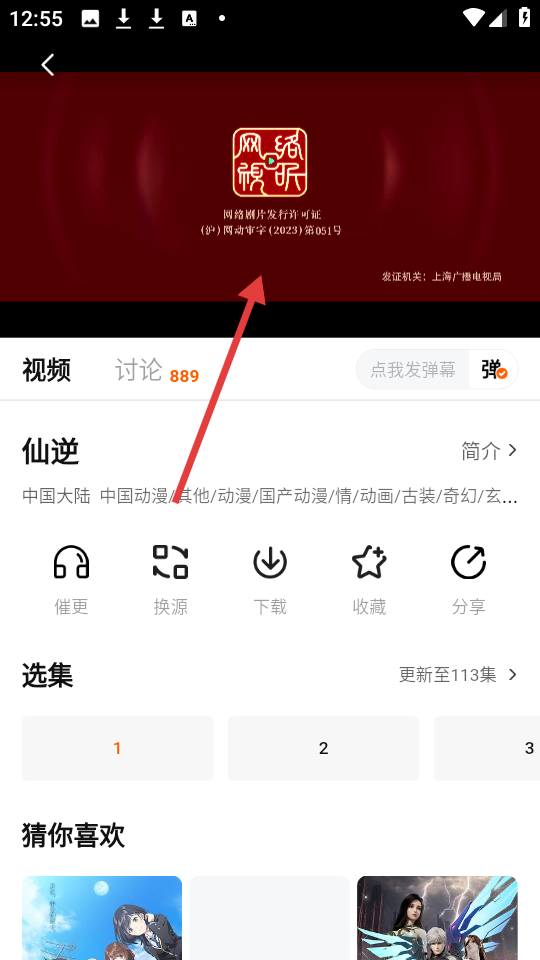 3、在观看历史页面,点击【仙逆1】条目,进入该剧播放页面。