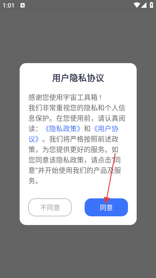 1、使用前阅读【用户隐私协议】,点击【同意】按钮进入软件。