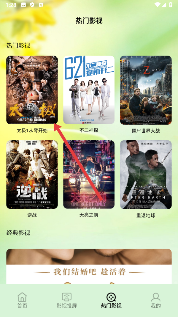 2、在热门影视页面点击【目标影视】,进入影视详情页面。