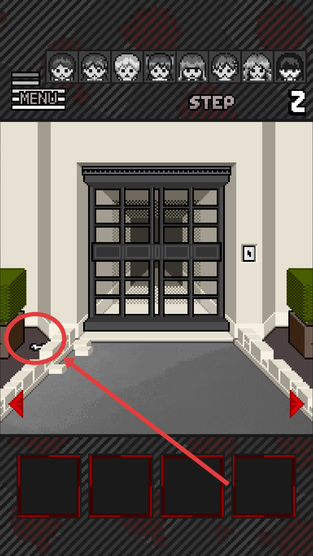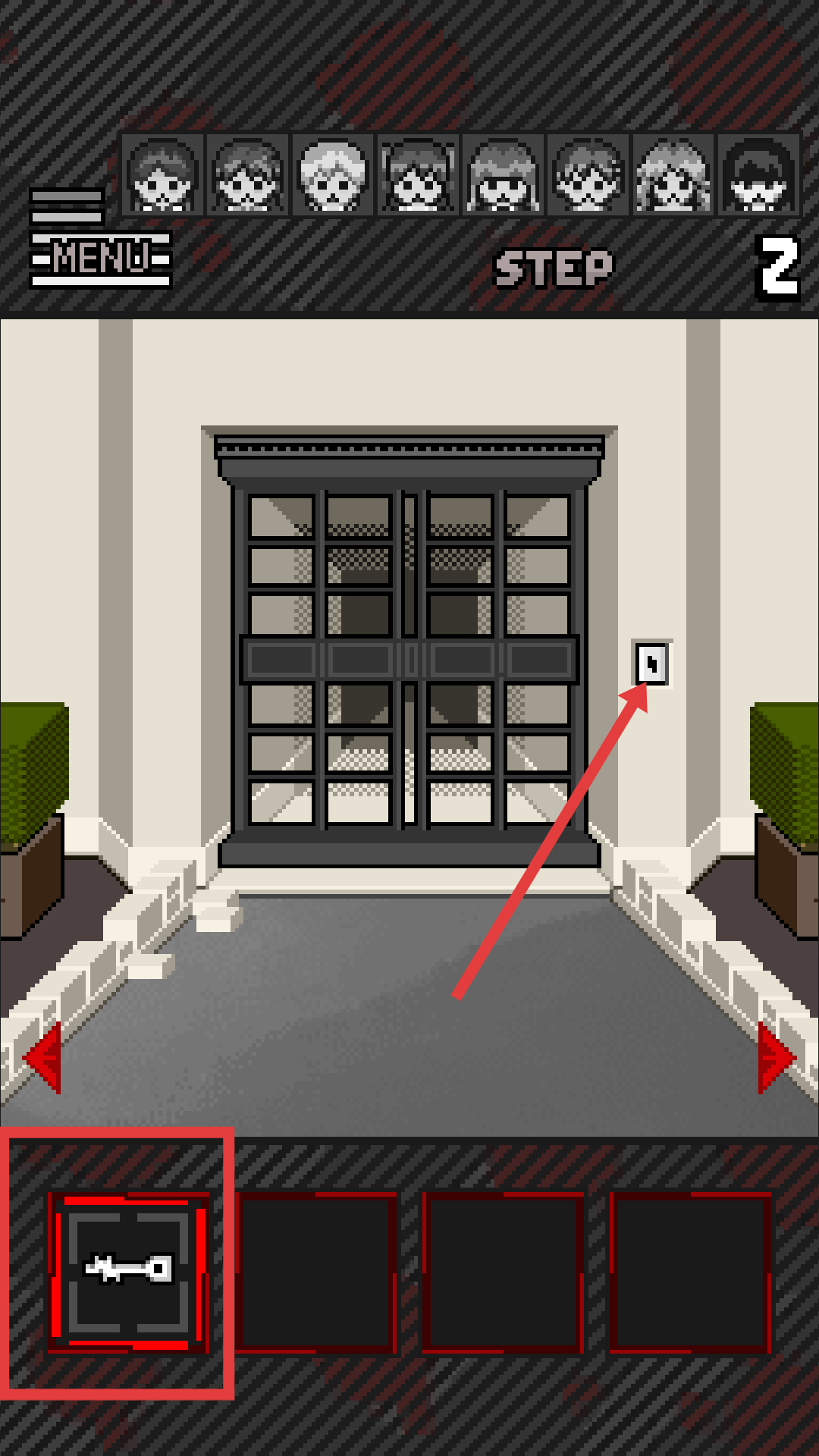 1、在建筑入口场景中,点击左侧红圈标注的钥匙图标,获取关键道具以推进游戏流程。