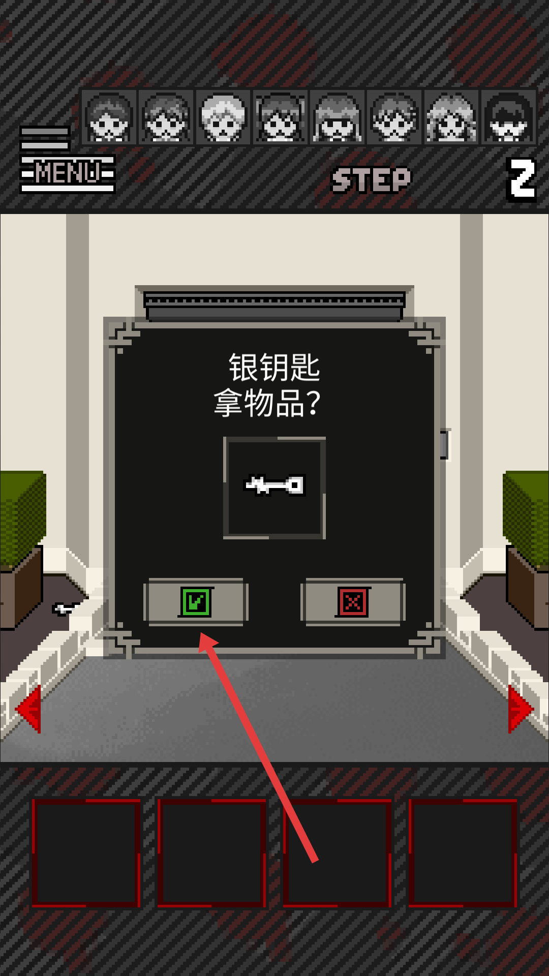2、当出现【银钥匙-拿物品?】的提示框时,点击绿色对勾按钮,确认拾取银钥匙道具。