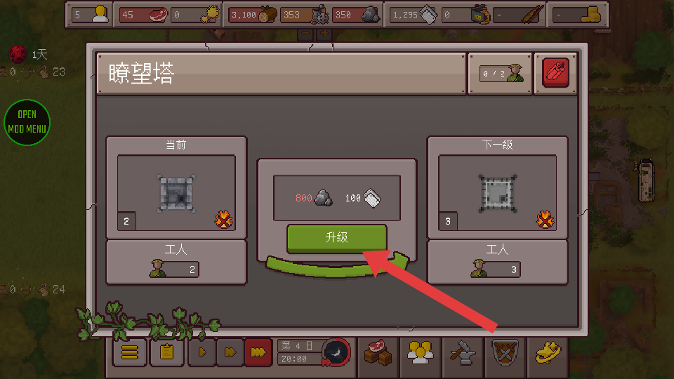 4、在升级界面里,消耗资源升级瞭望塔,提升其等级和功能,增加可分配的工人数量。