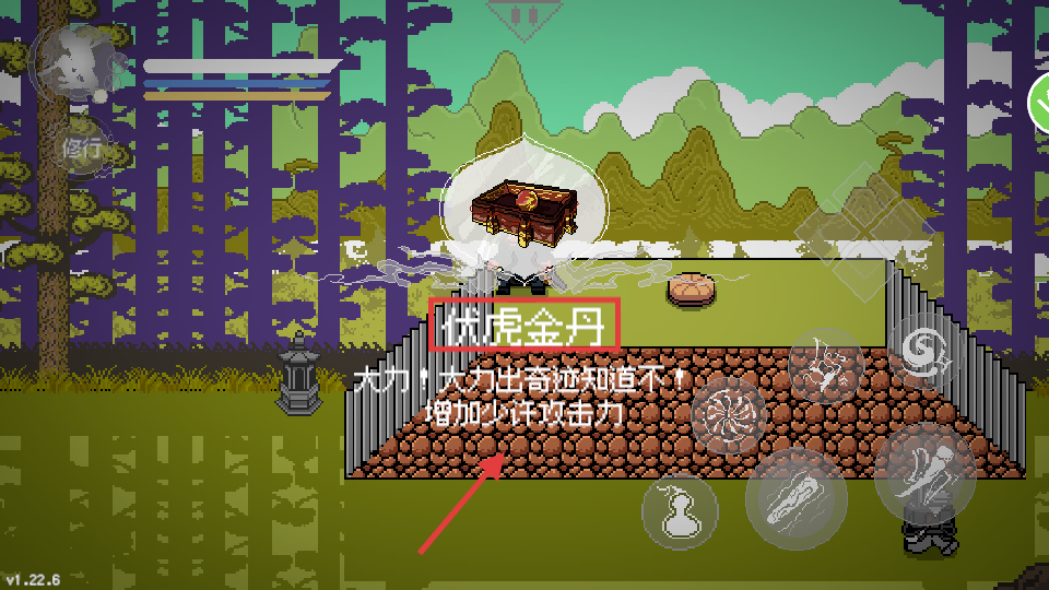 3、开启【宝箱】获得【伏虎金丹】,使用后增加少许攻击力,提升输出,助力战斗。