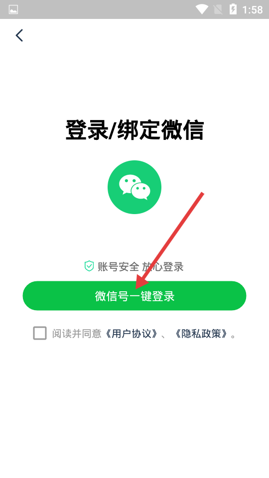 4、在登录/绑定微信页面,点击【微信号一键登录】按钮,进行微信登录。