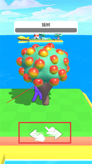 3、摇树时按照提示左右滑动屏幕,使苹果树晃动,从而掉落苹果,获取苹果资源。