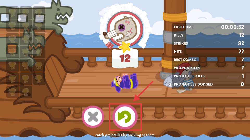 4、战斗结束后,点击【绿色循环箭头】重玩关卡,可积累更多击杀、连击等数据。