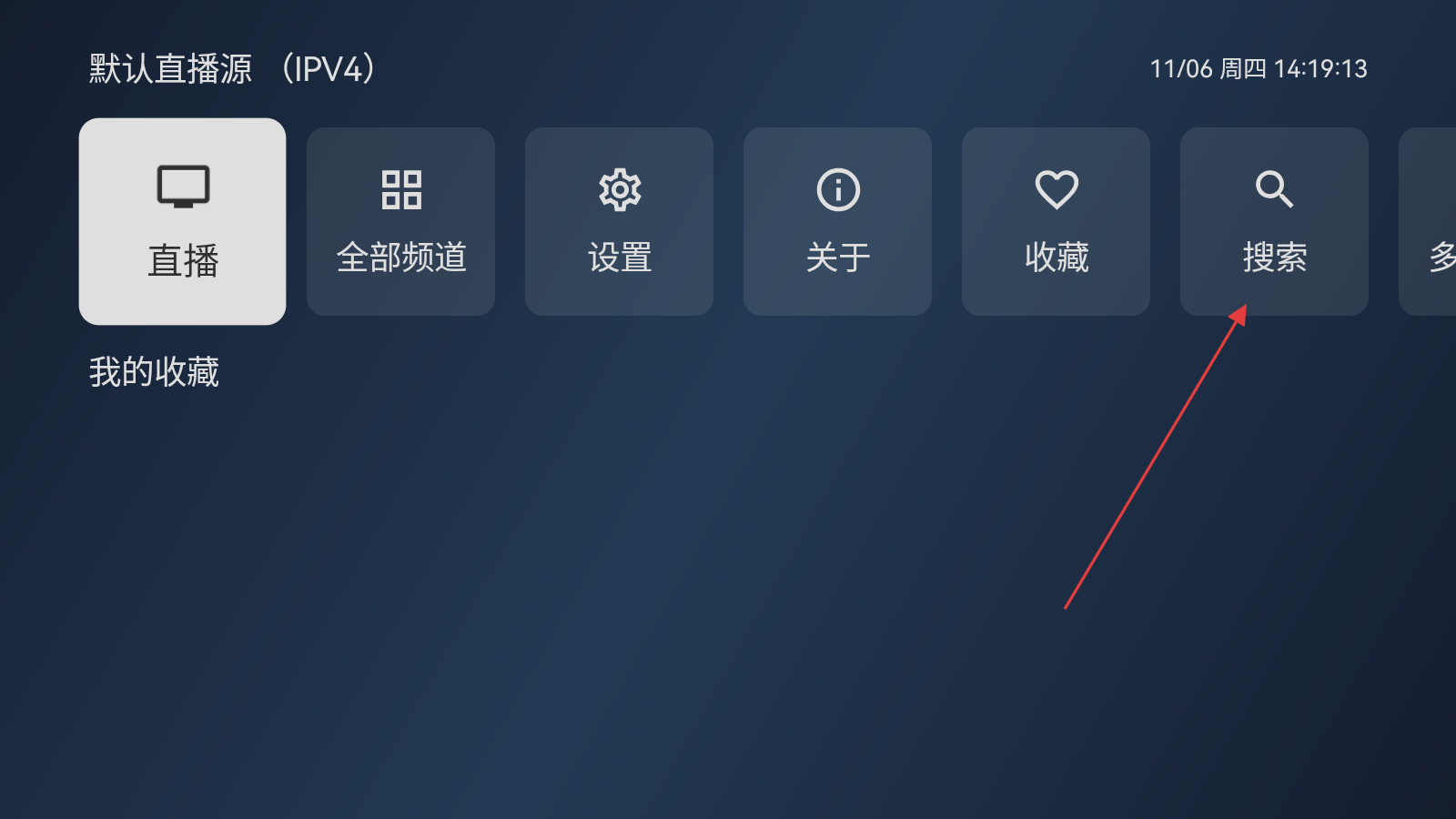 4、在搜索输入页面【输入关键词】,即可进行频道或内容搜索操作。