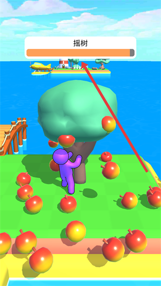 3、根据提示,不停滑动屏幕摇晃苹果树。