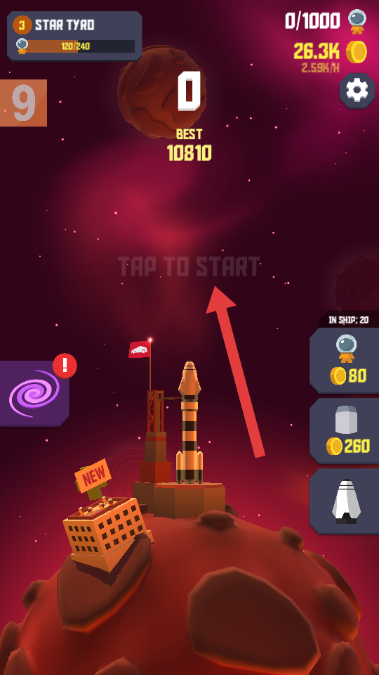 1、点击【TAP-TO-START】,开始游戏,操控火箭发射升空。