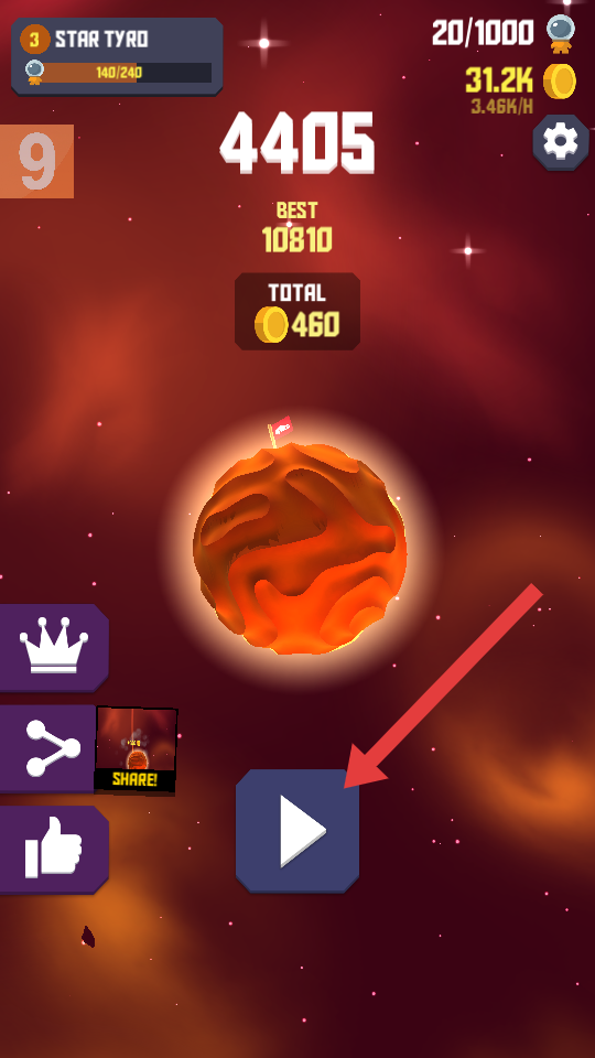 2、在火箭飞行过程中,通过点击屏幕控制火箭的推进,获得“PERFECT”评价,延长飞行距离。