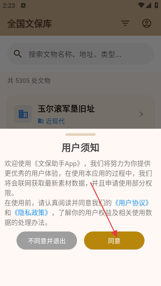 1、在用户须知界面,点击【同意】按钮,进入主界面。