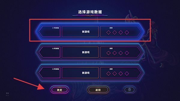 2、选择对应存档栏,点击【新游戏】,再点【确定】,进入冒险场景。