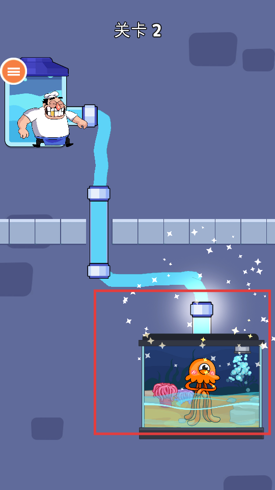 3、成功将水引入鱼缸,解救章鱼,完成关卡任务,获取游戏奖励。