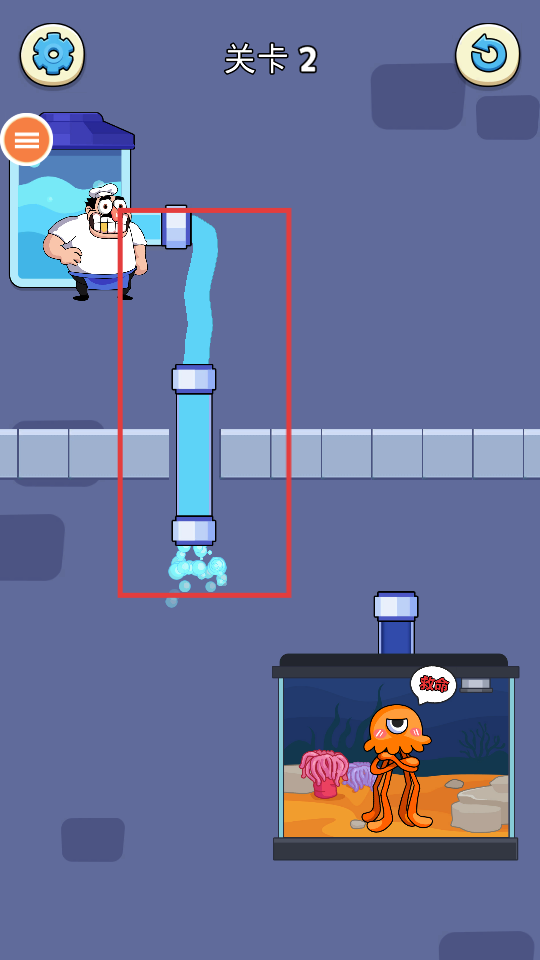 2、连接管道,引导水流,为后续解救操作做准备,推进关卡进程。