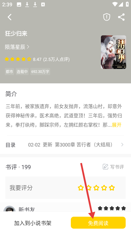 3、在详情页中,点击【免费阅读】按钮,进入阅读流程。