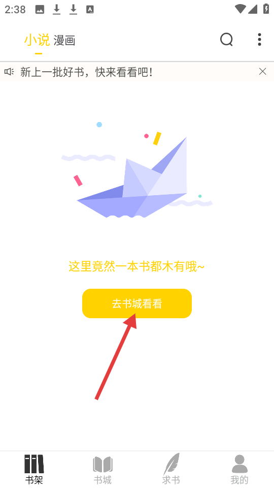 1、在书架页面,点击【去书城看看】按钮,进入书城页面。