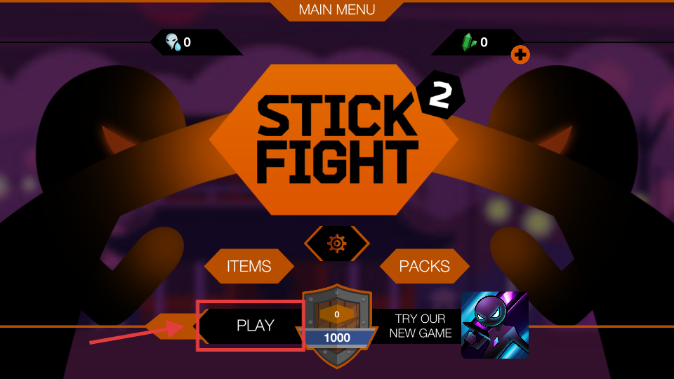 1、在主界面点击【PLAY】,进入火柴人格斗冒险,开启闯关战斗,迎接装备各异的对手。