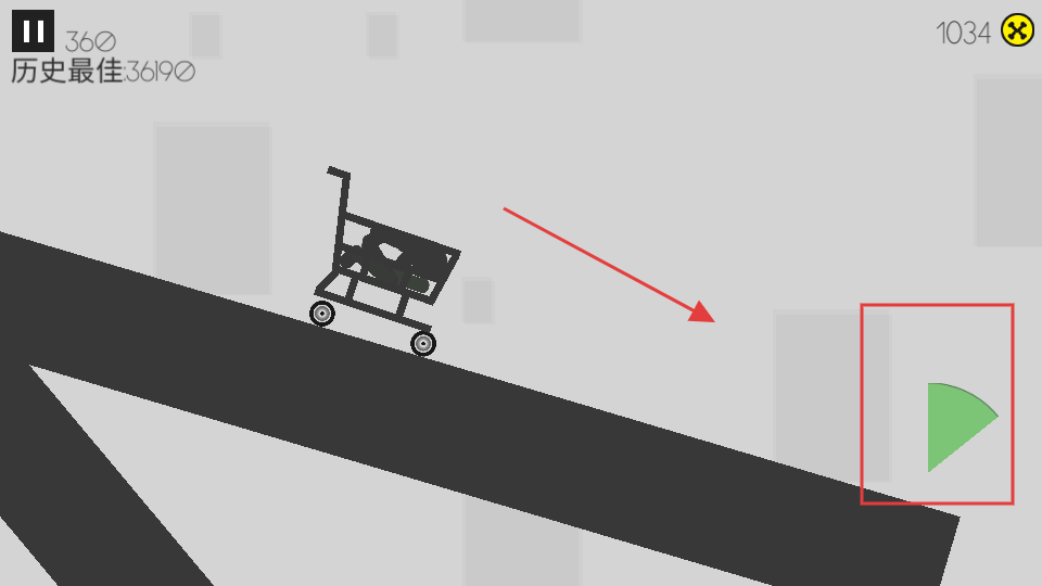 3、右侧的绿色扇形区域是辅助操作的提示,根据场景合理利用,助力车辆行驶和飞行,提升游戏得分。