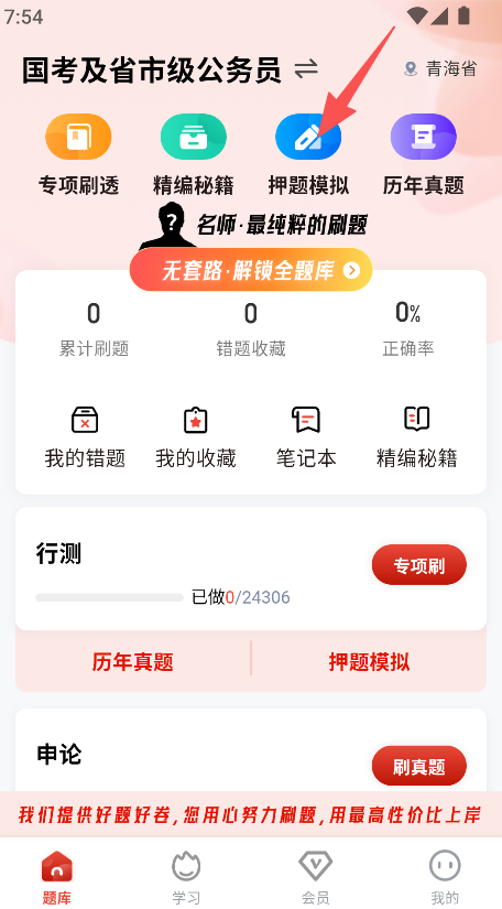 2、整合多模块备考资源,押题模拟、历年真题、专项刷题、面试押题齐聚,构建从笔试到面试的完整备考体系,备考资源全面。