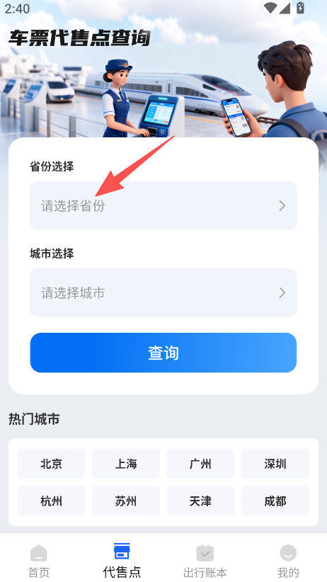 2、专注代售点信息展示,整合省份选择、城市查询、代售点详情功能,让用户在一个软件中完成代售点查找的全流程操作。