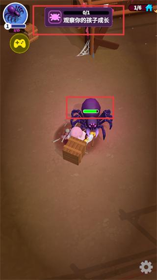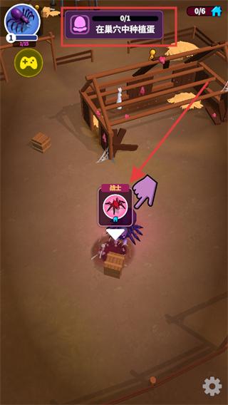 1、游戏中需完成“在巢穴中种植蛋”的任务,根据提示操作蜘蛛角色,在指定巢穴区域种植蜘蛛蛋,开启繁殖进程。