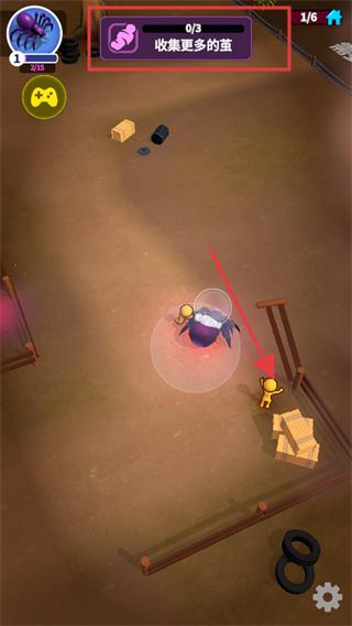3、执行“收集更多的茧”任务时,操控蜘蛛角色移动按照箭头方向走。
