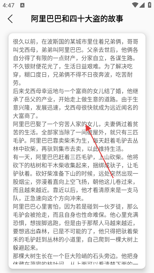 4、在阅读页面中,即可开始阅读《阿里巴巴和四十大盗的故事》内容。