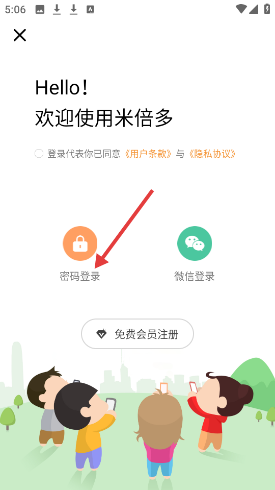 4、在登录页面,点击【密码登录】选项,进行登录操作以继续后续流程。