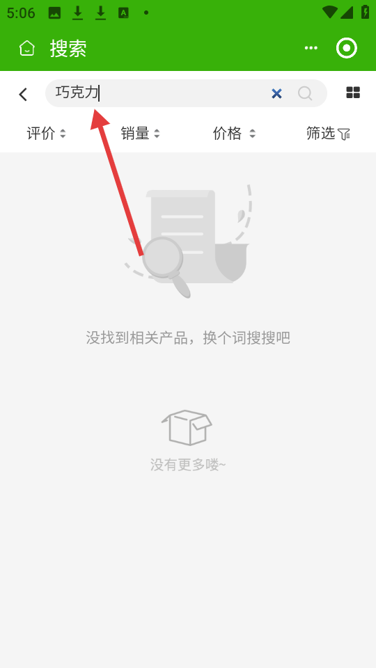 2、在搜索框中输入【巧克力】,进行商品搜索。