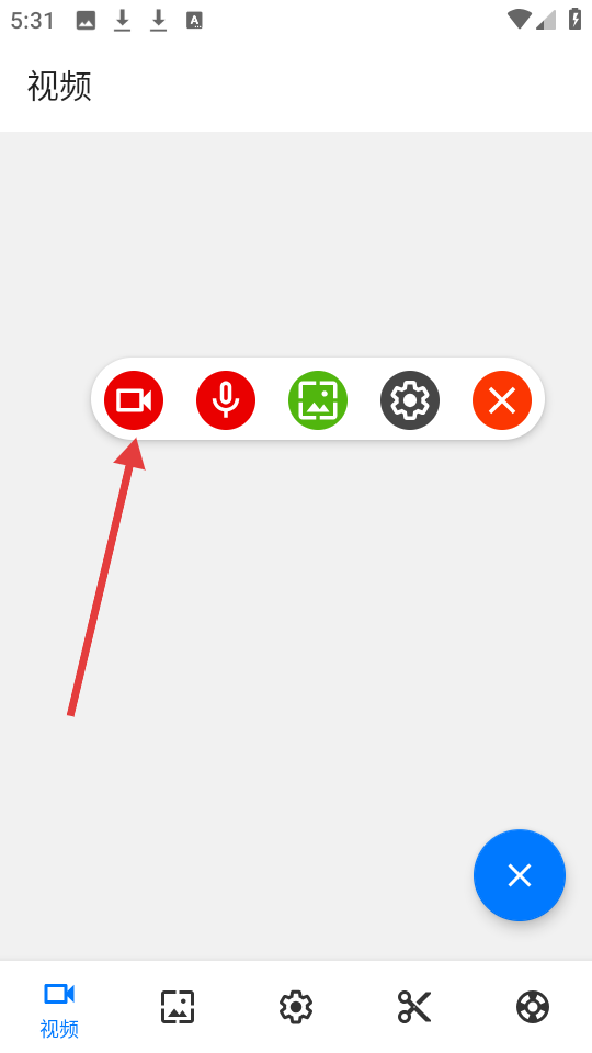 2、在应用界面中,点击右下角蓝色的录制按钮,可启动录制操作。