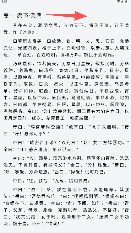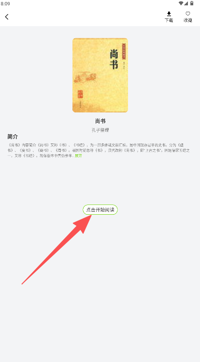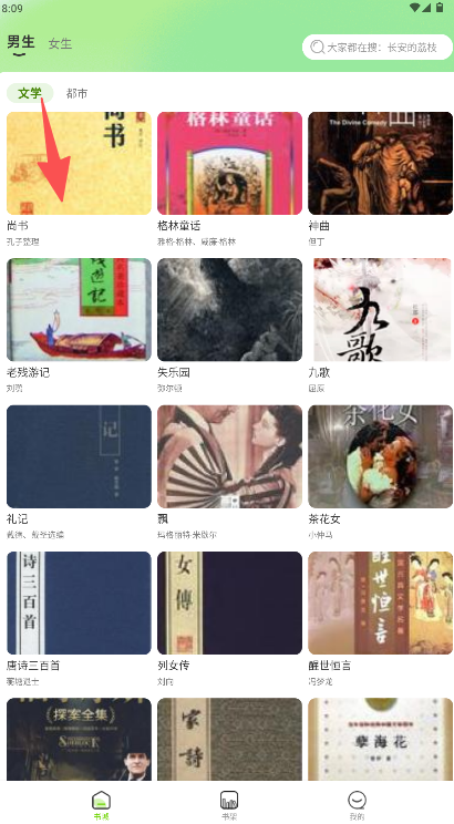 1、在首页分类后“文学”板块中找到并点击《尚书》封面进入。