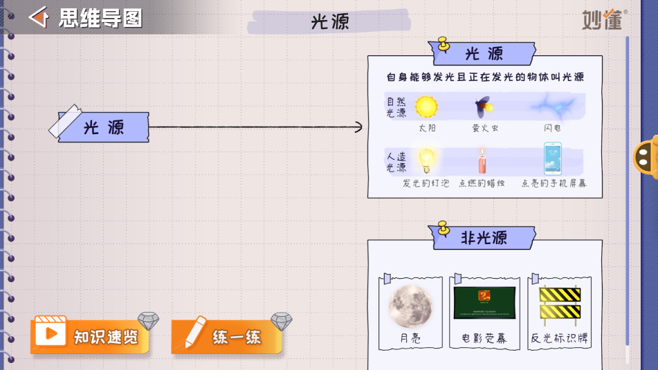 3、界面中,介绍了光源的基础知识,区别了光源和非光源。