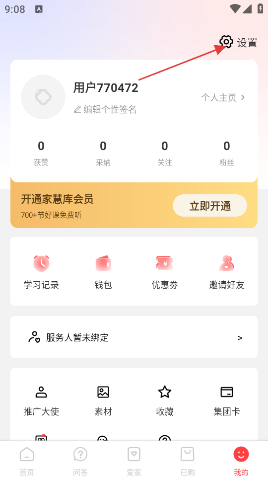 1、在“我的”页面,点击右上角的【设置】按钮,进入设置界面。