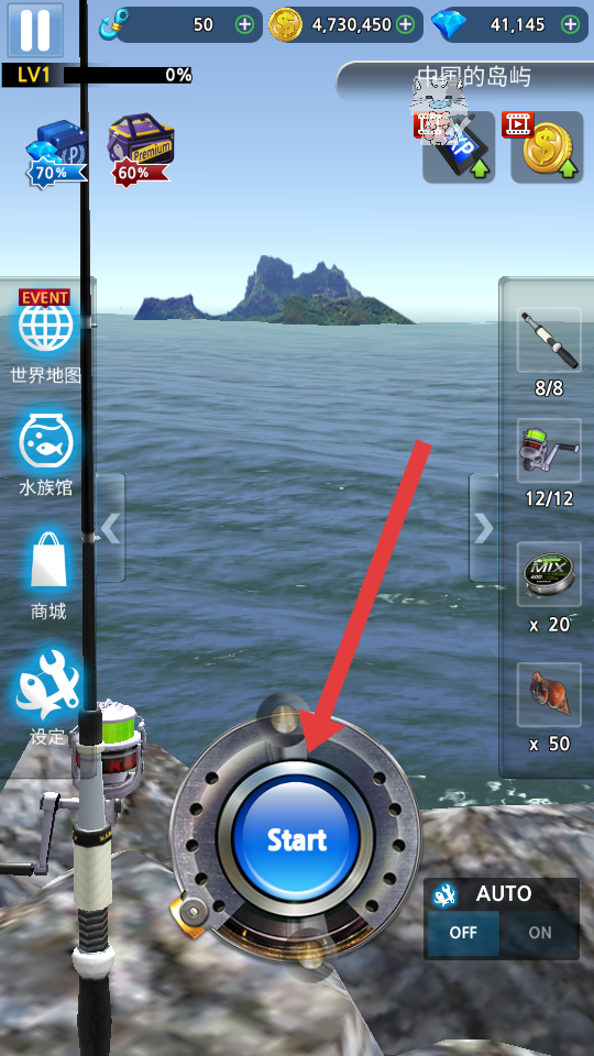 1、点击【Start】,开始钓鱼。
