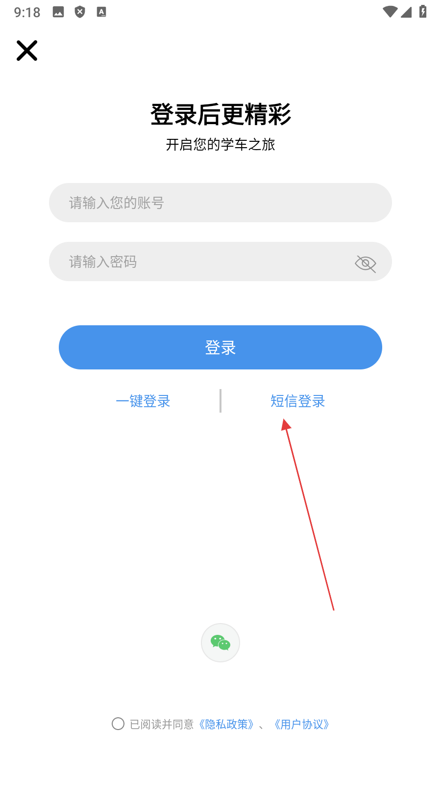 3、在登录页面,点击【短信登录】,进入短信登录信息填写页面。