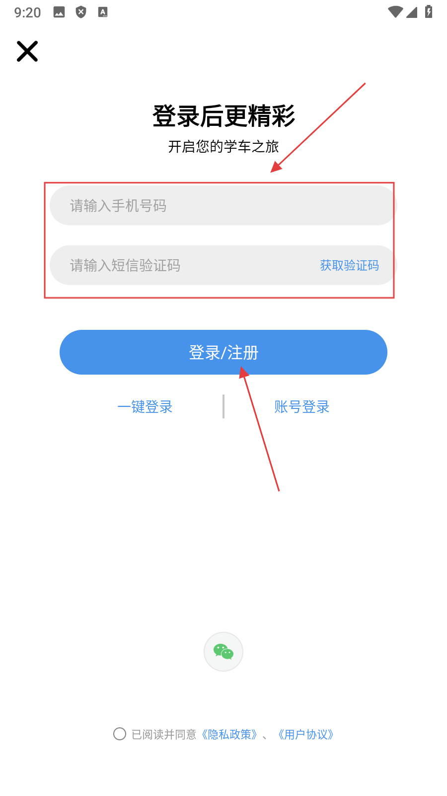 4、在信息填写页面,输入【手机号码和验证码】后点击【登录/注册】,即可完成注册操作。