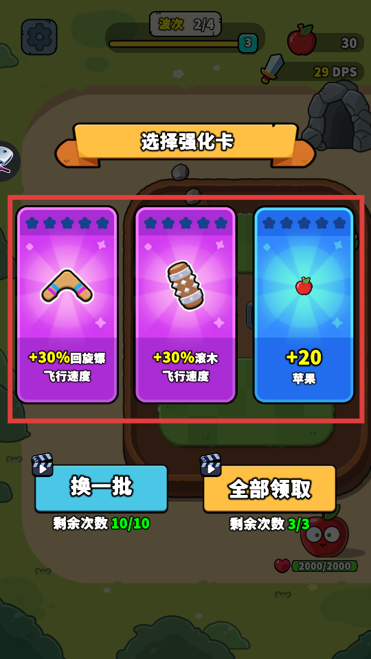 4、战斗阶段结束后,可选择强化卡,增强自身战力,继续挑战后续波次和关卡。