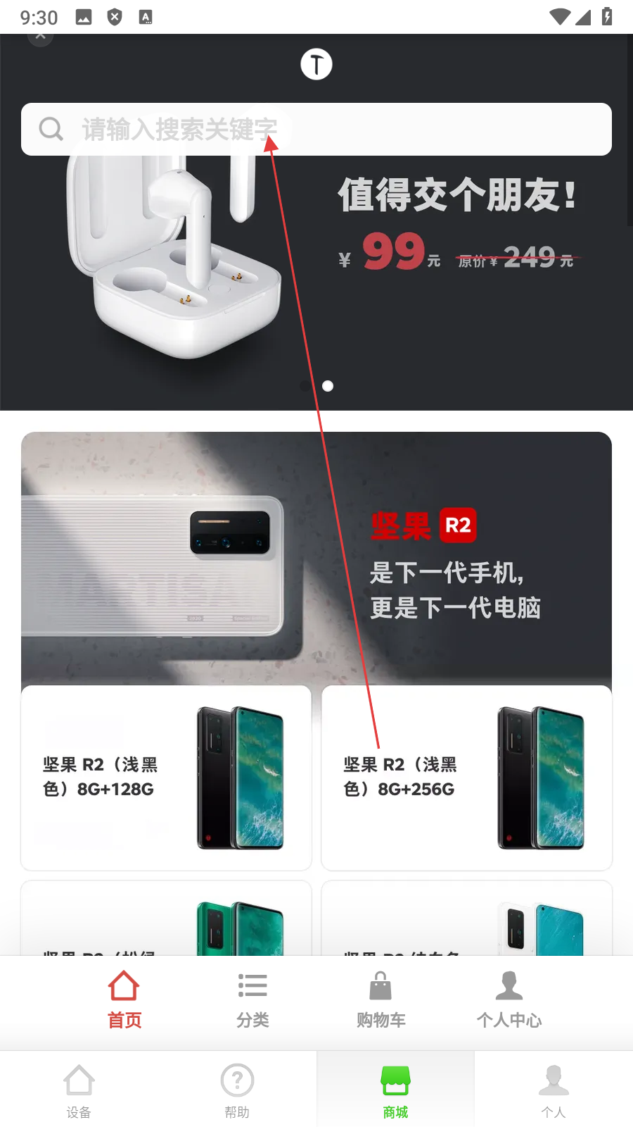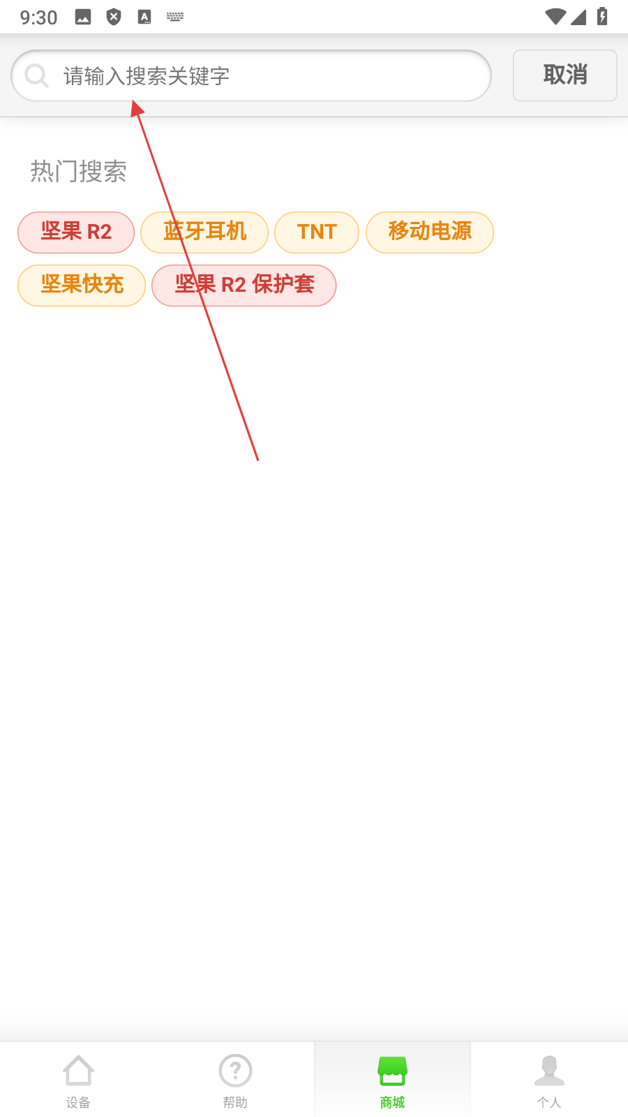1、点击【顶部搜索框】,进入搜索输入页面。