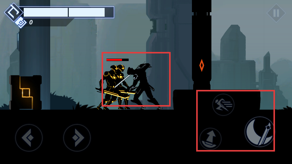 4、使用技能和攻击按钮,消灭敌人,提升战斗技巧,完成关卡任务。