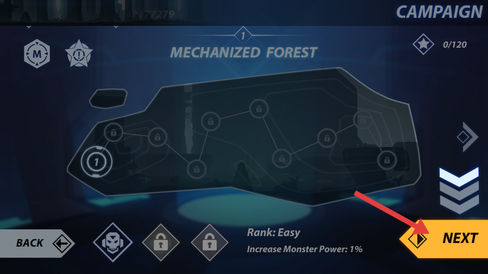 2、点击【NEXT】,进入【MECHANIZED-FOREST】关卡,开始游戏挑战。